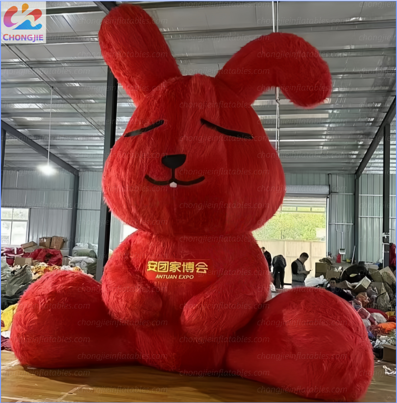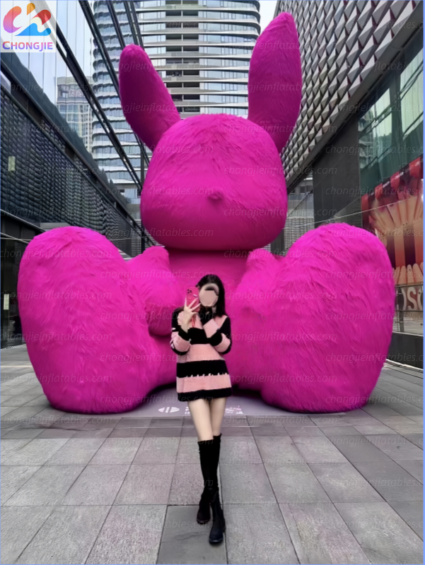 A massive, huggable inflatable rabbit with irresistibly soft fur-like texture.
